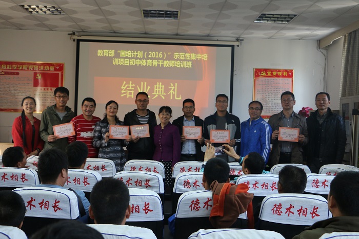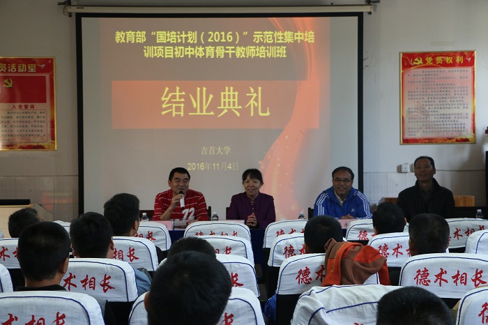 2016114日,教育部“国培计划2016”示范性集中培训项目初中体育骨干教师的最后一个仪式经验交流、学习分享与结业典礼。威廉希尔中文官网继续教育学院院长田筱鸿、威廉希尔中文官网党组织书记肖松、副书记吴永海副、办公室主任李政洪、班主任黄文辉老师及王月英老师参与了本次典礼。