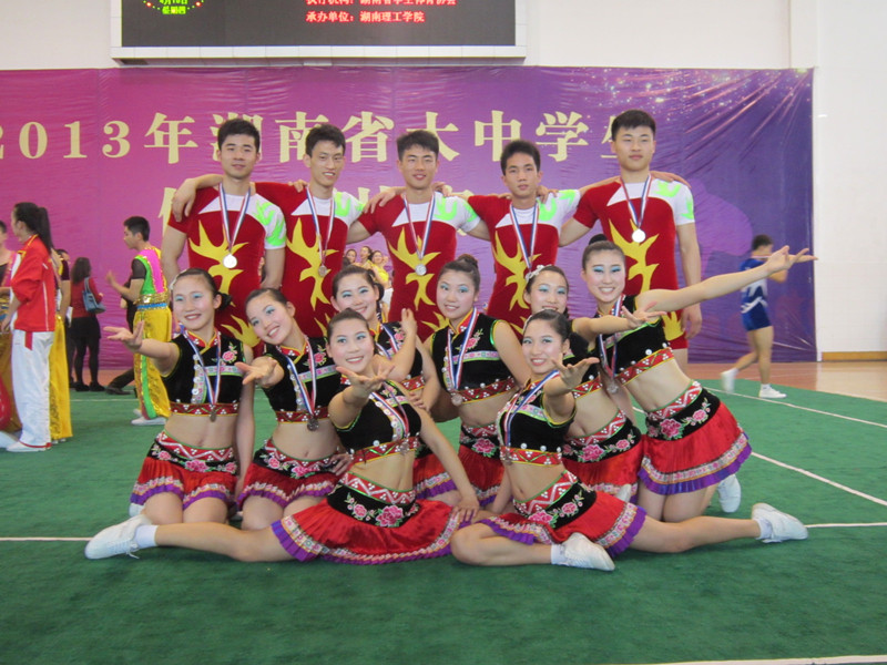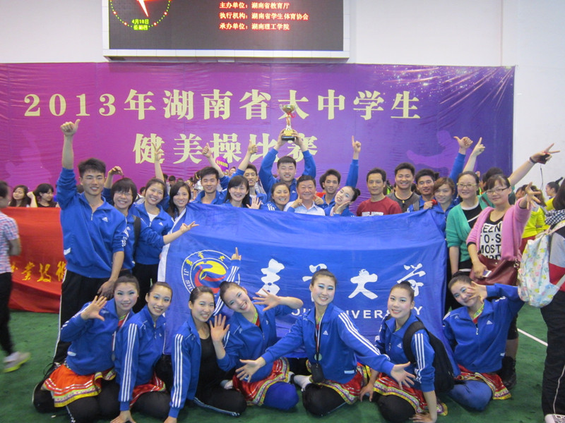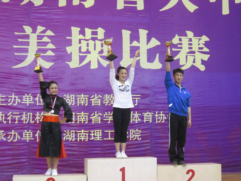 (文理中)由湖南省教育厅举办、湖南省学生体育协会协办、湖南理工学院承办的2013年湖南省大中学生健美操比赛于4月17日-20日在湖南理工大学体育馆举行。在本次比赛中,我校健美操队发扬顽强拼搏、勇于争先的精神,赛出了水平,赛出了风格,取得了大学组团体总分第二名;在9个单项中获得了男子单人操第一名,男子五人操、女子五人操、男子三人操、女子三人操、混合双人操、女子单人操、六人器械健美操、自由舞蹈啦啦操8项第二名的优异成绩。