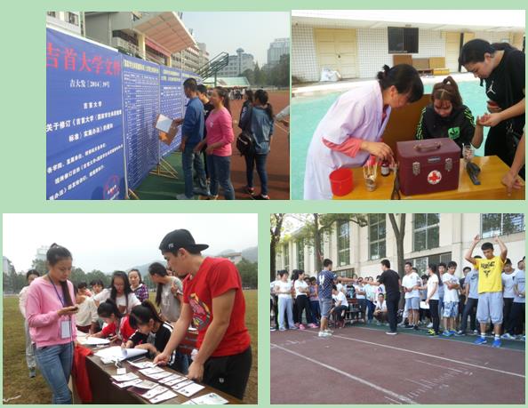 根据教育部办公厅关于2015年开展国家学生体质健康标准测试工作的相关要求,为彻实做好我校2015年《国家学生体质健康标准》测试的实施工作,在学校校长领导下,公共体育教学部认真部署,积极组织,于9月26日正式开始对吉首、张家界校区四个年级1万八千多全日制本、专科学生进行测试;其中女生测试项目有:身高、体重、肺活量、50米、仰卧起坐、立定跳远、坐位体前屈、800米;男生测试项目有:身高、体重、肺活量、50米、引体向上、立定跳远、坐位体前屈、1000米;分别从身体形态、身体机能和身体素质等方面综合评定学生的体质健康水平。