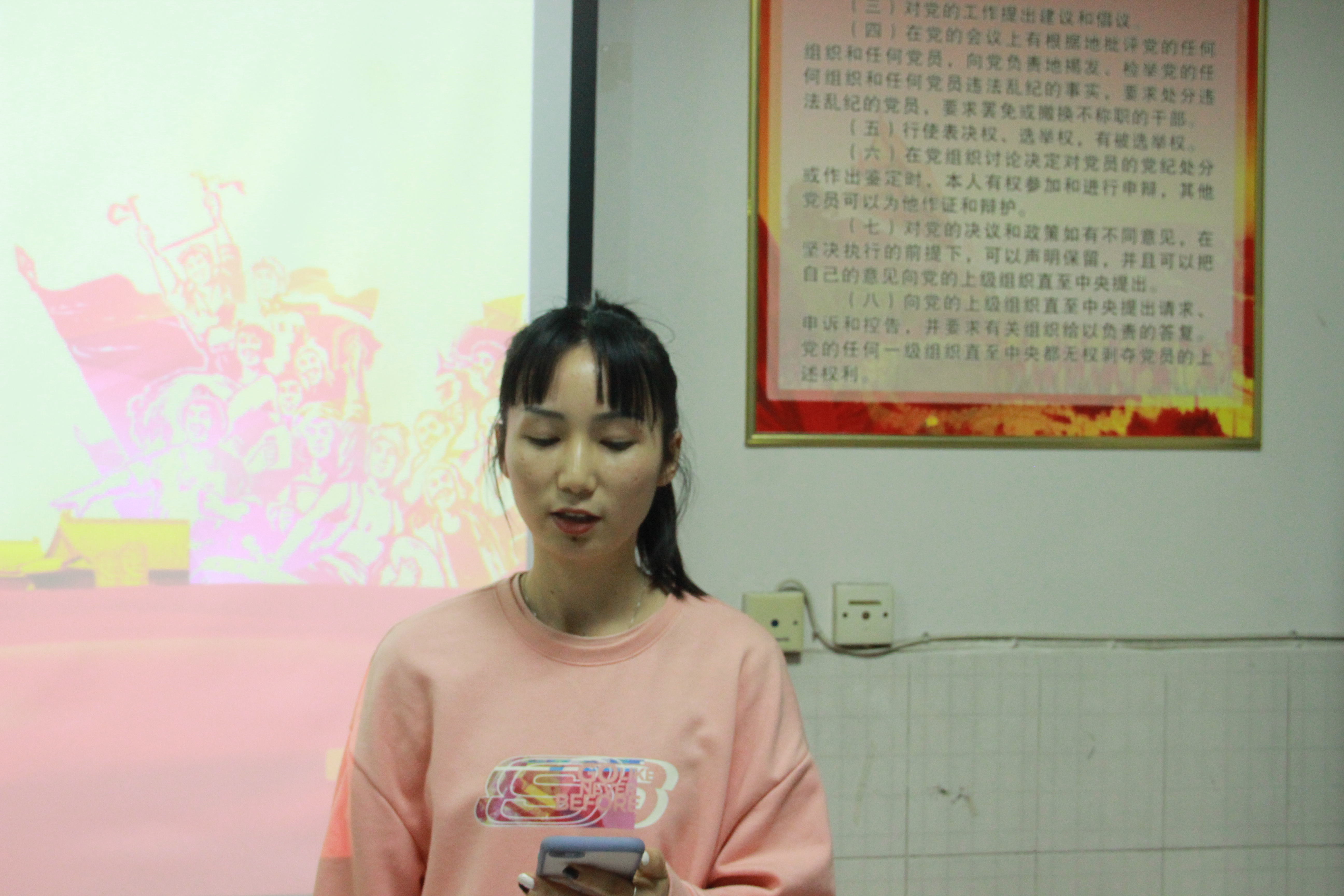 图二 入党积极分子谭爽同学代表全体学员发言