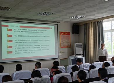 5月14日下午,威廉希尔中文官网在三楼多媒体教室召开教工党员党史学习教育专题报告会,特邀请我校马克思主义学院硕士生导师廖金香教授作主题为《从党的百年历史中汲取砥砺前行的智慧和力量》的专题宣讲,周道平院长、吴湘军副书记及全院全体党员(张家界校区腾讯视频参加)聆听了此次报告会。吴湘军主持会议。