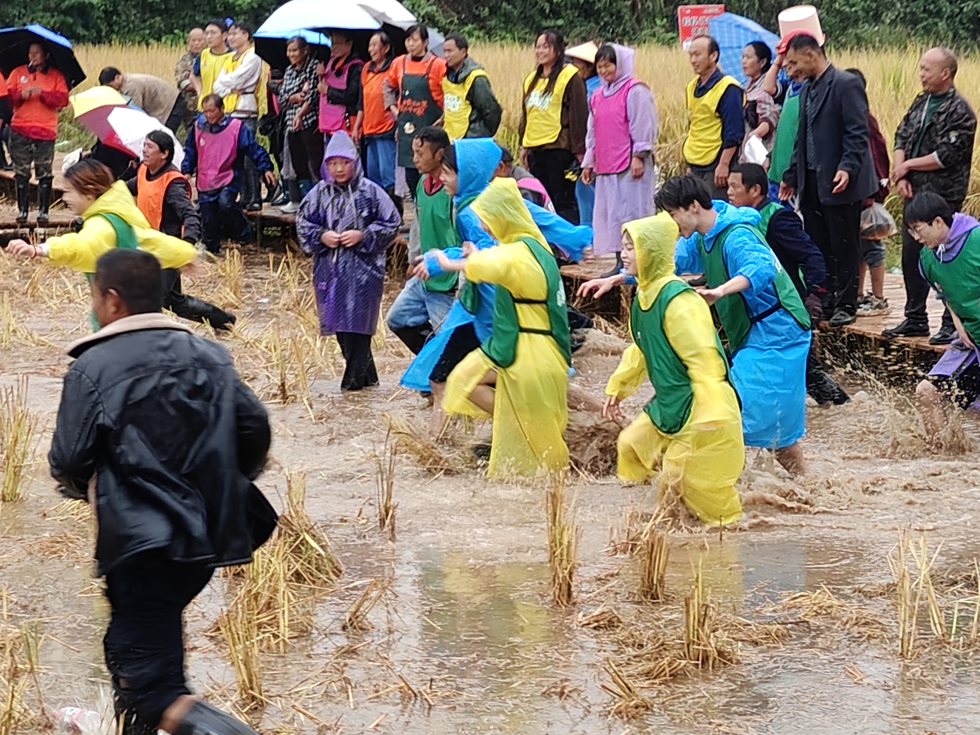 田间地头生产忙、农副特产遍地香。丰收为节、文化为媒。稻田作舞台,百姓做观众。学生们开展了丰收歌、采茶舞、摆手舞、民族健身操等自编自演的文化活动,结合课堂所学将民族传统体育文化融入乡村振兴文化活动中,展示了威廉希尔中文官网武术与民族传统体育国家级一流本科专业建设的成效,开辟了文化融入乡村振兴的第二课堂。公益助农吸引大批外地游客来现场观赏体验。