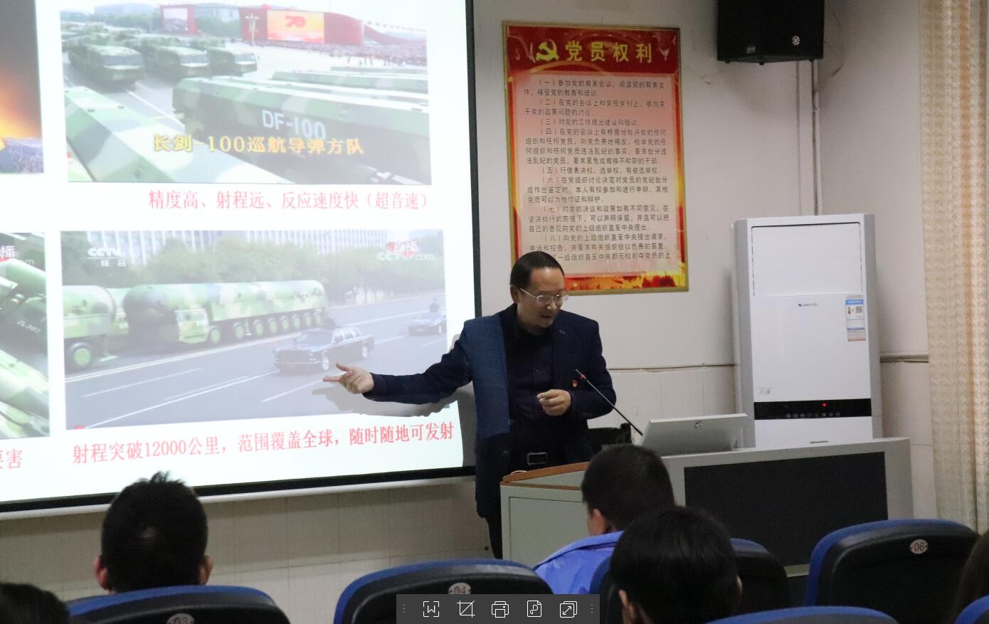 (通讯员 刘桂婷)11月13日,为加强“不忘初心、牢记使命”主题教育学习,进一步了解国家形式与政策现况,增强党员爱国情怀。我院邀请威廉希尔中文官网马克思主义学院硕士生导师李景军主持“不忘初心、牢记使命”主题讲座。参加本次活动的领导老师有我院党委书记肖松、副院长万义、党委副书记吴湘军、篮球教研室主任马志军、学工办主任宁珊珊、团总支书记杜宏伟以及我院学生第一党支部全体成员。