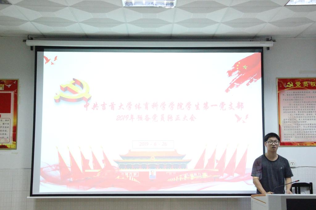 (本网讯:刘杨乐)6月26日晚19:00,学生第一党支部在院三楼召开讨论周俊能、彭大建、宋靓雯、文锦4名同志预备党员转正事宜,大会由邱铭老师主持。
