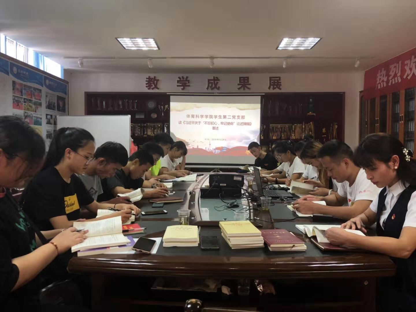 9月29日上午,威廉希尔中文官网威廉希尔中文官网学生第一、第二党支部在我院荣展室动员部署开展“不忘初心、牢记使命”主题教育,集体学习习近平总书记在“不忘初心、牢记使命”主题教育工作会议上的讲话和《中共中央关于在全党开展“不忘初心、牢记使命”主题教育的意见》文件精神。学院学生第一党支部书记宁珊珊、学生第二党支部书记杜宏伟及学院全体本科在校党员出席会议。