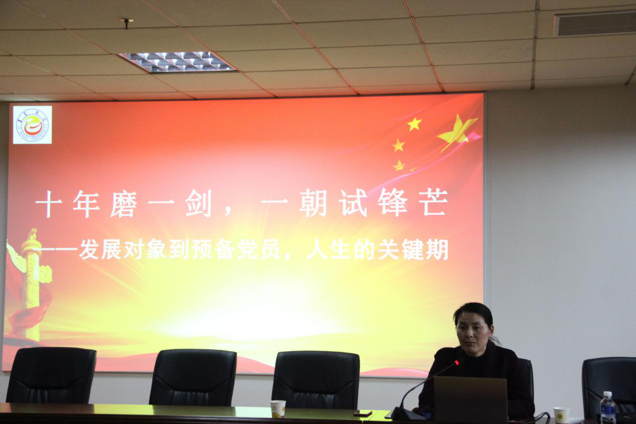 党委副书记吴湘军以“十年磨一剑,一朝试锋芒”为主题向同学讲解了发展对象到预备党员是人生的关键期,确定发展对象是入党积极分子的华丽转身和质的飞跃。强调同学们要进一步端正入党动机,树立为实现共产主义伟大事业而奋斗终身的坚定信念,尽快加入党组织。