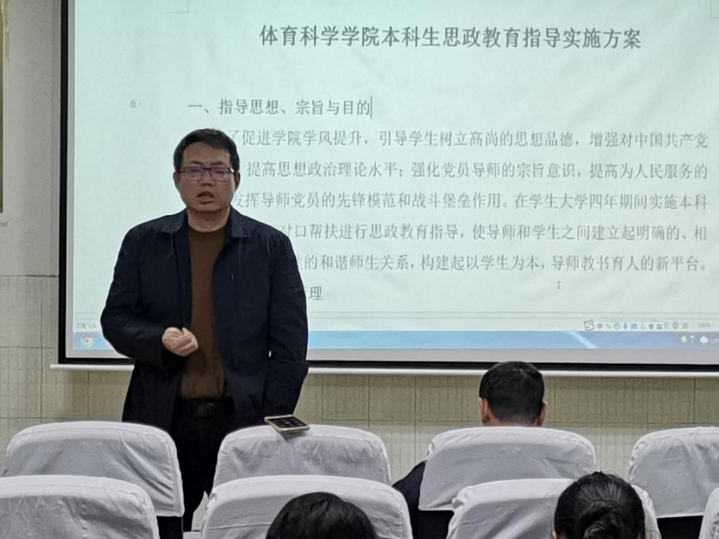 吴湘军副书记宣读了《威廉希尔中文官网本科生思想教育指导实施方案》,从方案制定的背景、指导思想、目的意义、组织领导和导师的配备标准、职责要求、监督评价、考核办法等方面对党员导师制工作进行了总体部署和具体安排。