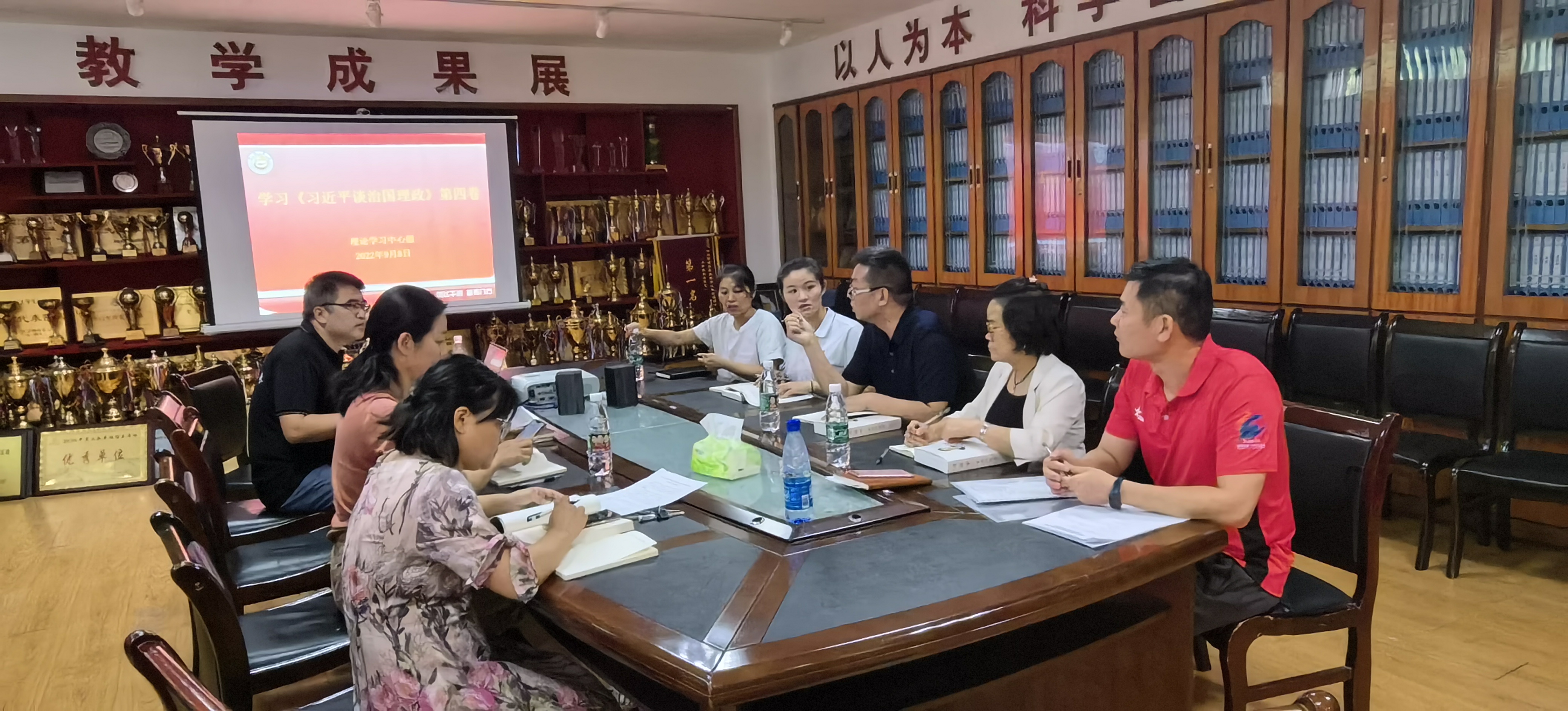 吴湘军领学了《习近平谈治国理政》第四卷——读懂坚持党的全面领导;周剑波领学了让群众过上好日子——习近平正定足迹;万义结合工作实际谈到要以习近平总书记为榜样坚持读书学习,提高服务水平,始终把学习当成一种生活态度、一种工作责任、一种精神追求。教工第二支部书记刘卫华同志学习后深有感触的说:“习近平同志在正定把对人民的深厚感情倾注到工作中,全心全意设身处地为老百姓着想、为老百姓干事,以实实在在的政绩赢得了群众认可和信任。”“中国共产党除了国家、民族、人民的利益,没有任何自己的特殊利益,唯有全心全意践行党的根本宗旨才能让人民群众真正过上好日子”