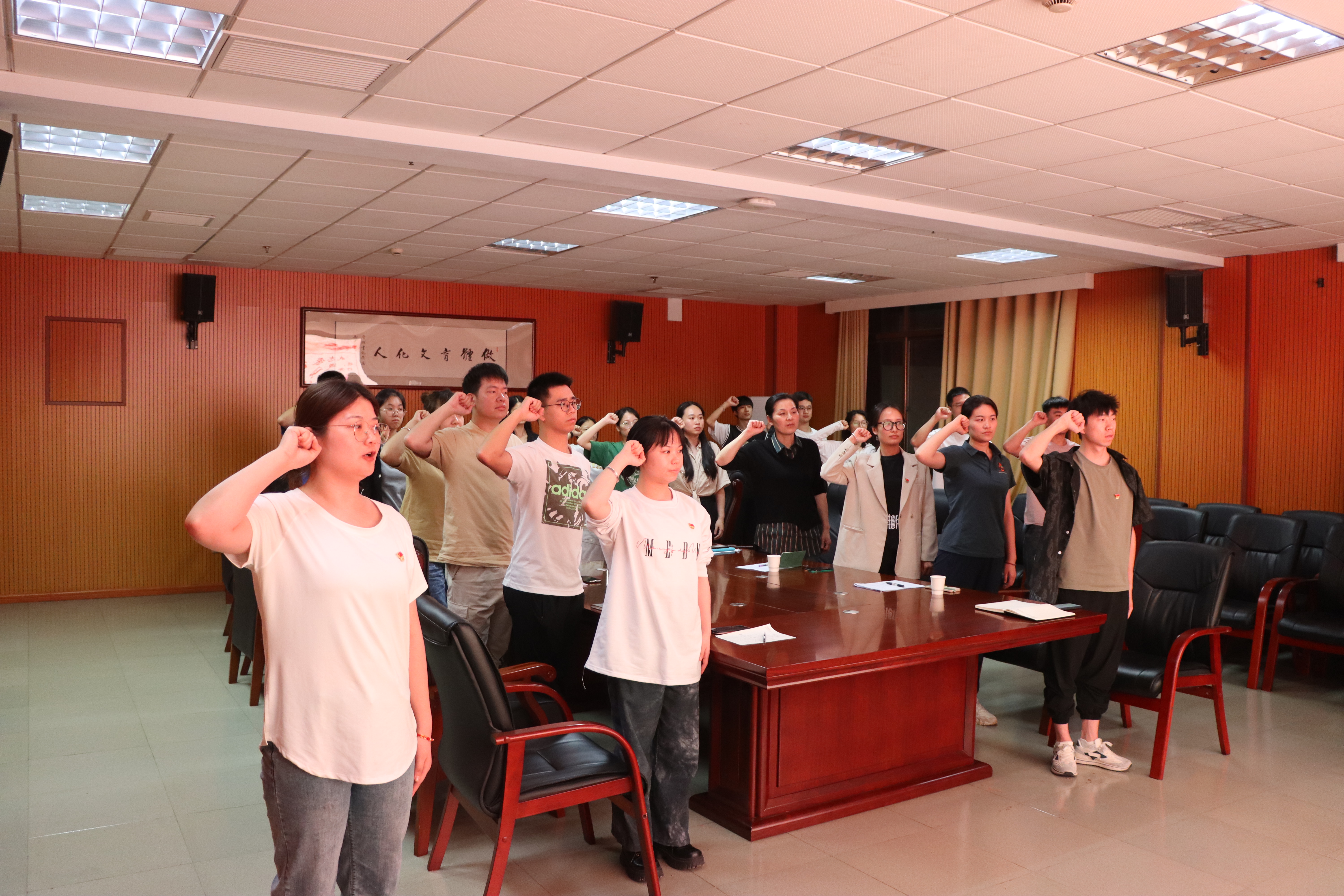 第三项议程,由本科生第二党支部副书记徐艳霞同志带领全体党员重温入党誓词。在高昂的誓词声中,党员同志们庄严而坚定,将不忘入党初心,牢记肩上使命。