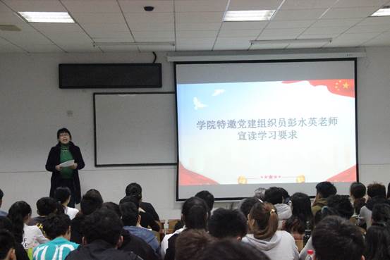 学院特邀党建组织员彭水英老师宣读学习要求:第一、要严于党的纪律要求。第二要提高认识,提高学习的认识性,不早退、不迟到、不旷课。第三、以高要求规范自身做到培训课程不缺课。第四、遵守课堂纪律,做好上课认真听讲。