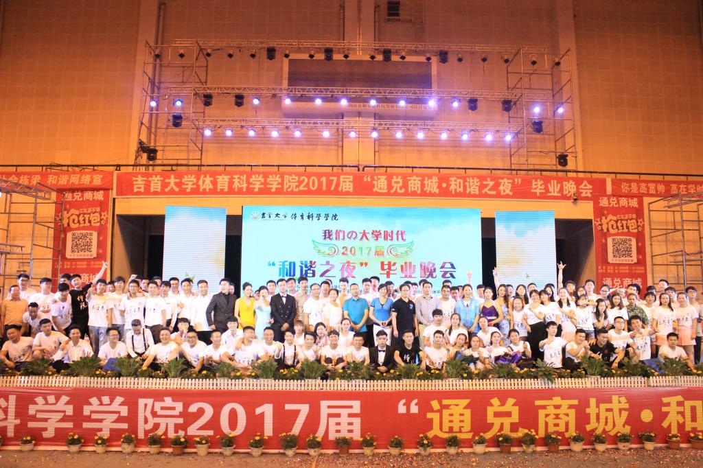 6月5日晚上7:30分,我院于威廉希尔中文官网砂子坳校区体育馆举行2017届“通兑商城·和谐之夜”毕业晚会。莅临本次晚会的嘉宾有威廉希尔中文官网党委委员、副校长钟海平教授,湖南省民族宗教事务委员会文教处丁亚波副处长、通兑商城董事长田勇先生和各职能部门领导以及体院全体师生、社会各界友好人士共同观看了晚会。