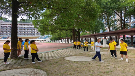 在陀螺技术教学环节,龙佩林教授首先向学员们介绍了陀螺项目的起源、发展历程以及不同地区的特色差异,使学员们对这一传统体育项目有了更加全面的认识。随后,龙教授亲自示范了放陀和打陀,并指出了其关键要点,包括正确的握陀姿势、发力角度和力度等,让学员们对技术要领有了直观的理解。龙佩林教授耐心地纠正学员的错误动作,确保每位学员都能准确掌握技术要领。在教授的悉心指导下,学员们通过反复练习,逐渐掌握了打陀技术和放陀技术。此外,龙教授还向学员们展示了团队陀螺比赛的形式和得分细则,并讲解了陀螺技术与田径体育项目之间的相通之处,加深学员们对陀螺运动的理解。