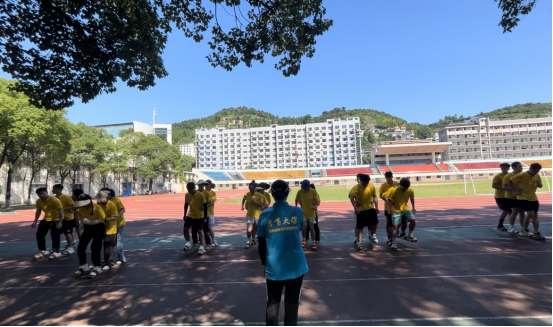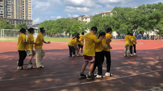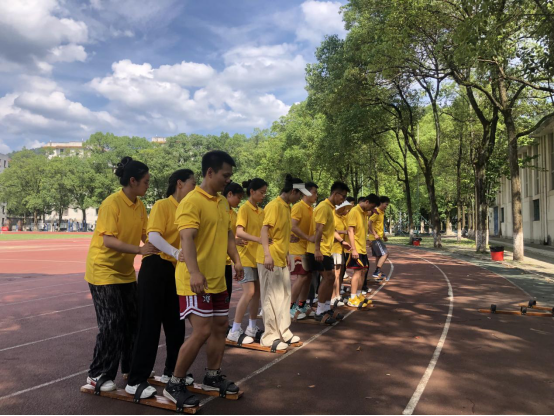 上午9点,第一组学员在唐丽教授的指导下进行板鞋的技术学习。唐丽教授首先从板鞋的历史起源进行介绍,并详细讲述了板鞋运动从技击制敌的军事训练到现在娱乐身心的群众性体育项目的发展历程。接下来,为了使学员们配合得更加默契,利用趣味十足的“兔子舞”来进行热身活动,之后在唐丽教授的带领下,开始了无板、穿板的原地练习,在唐老师的口令下原地踏步,以及前后左右的练习,体会三人之间的协调性和一致性。为了增加板鞋的竞技性,唐丽教授组织了多样化的板鞋竞速比赛。在激烈的比赛中,学员们意识到团队成员之间的默契与配合异常重要,需要充分发挥各自的优势,共同为团队胜利争取优异成绩。