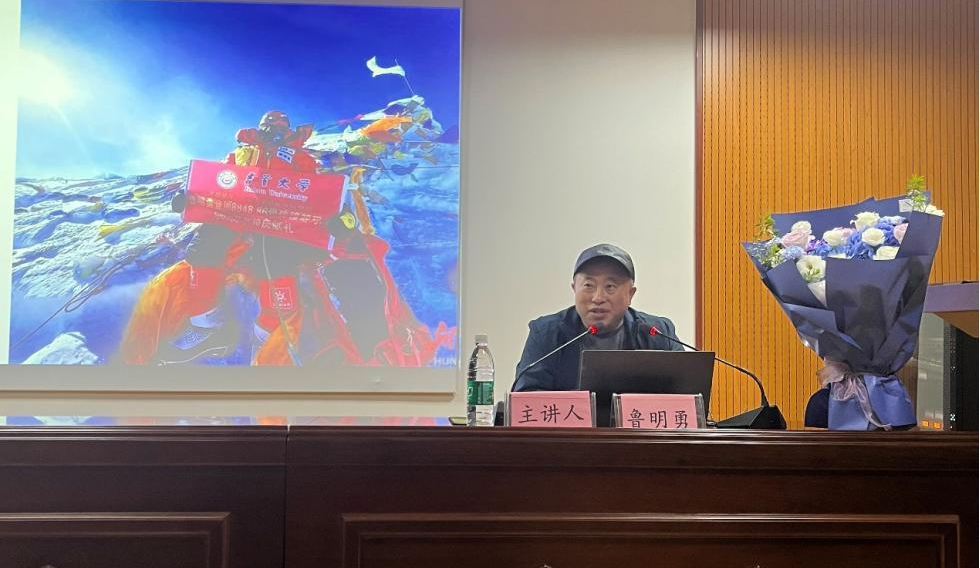 吴湘军书记对于鲁明勇教授以及各位教师和同学的到来表示热烈的欢迎和诚挚的问候。且声情并茂的向全体同学介绍了鲁明勇教授是威廉希尔中文官网旅游学院院长,湖南省政协常委、民盟威廉希尔中文官网委员会主委,国家一级登山运动员,曾攀登过多座高海拔雪山。今年5月19日,成功登顶8848.86米的世界第一高峰珠穆朗玛峰,成为国内首位登顶珠峰的旅游学者,也是湘西自治州和吉首市首位登顶珠峰的勇士。