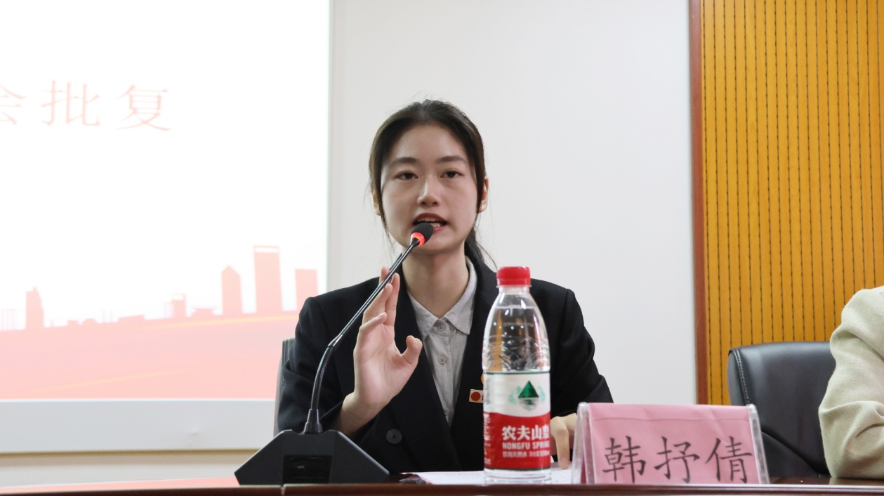 (图为校学生会代表韩抒倩为大会宣读批复)