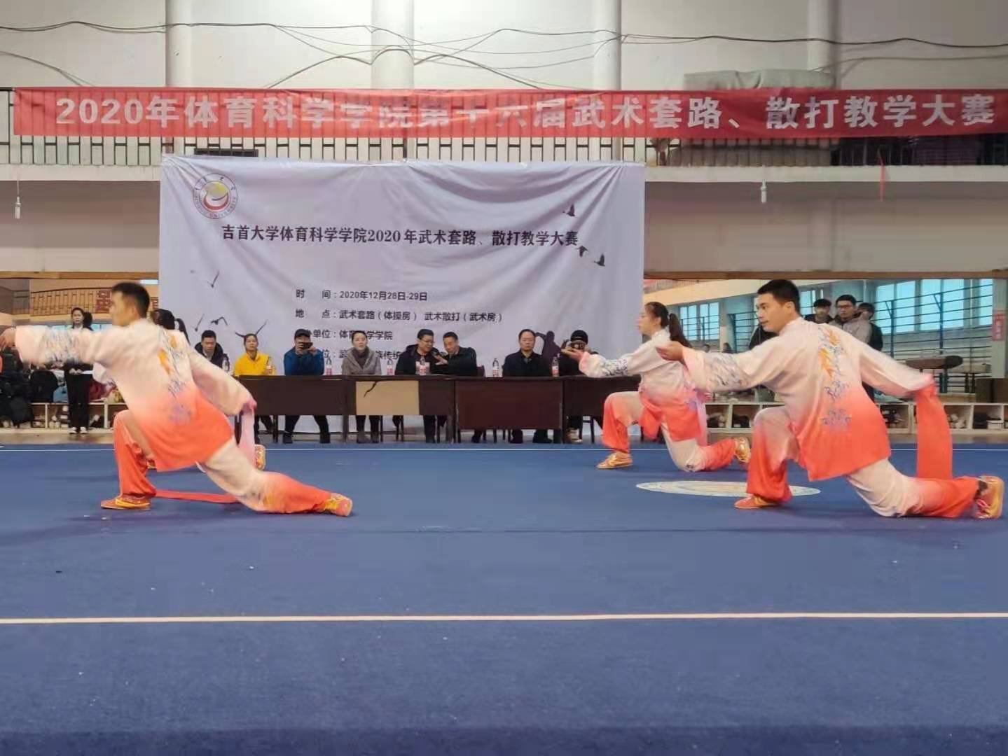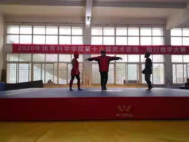 (通讯员:余坷)为进一步促进武术课程教学的改革与实践,落实学校课程教学改革方案,提升学生的教师教育素养和武术、散打项目教学水平,我院于12月28日上午在综合馆体操房展开了2020年武术套路、散打教学比赛,莅临比赛现场的领导老师有党委副书记吴湘军、副院长万义、武术与民族传统体育系主任陆盛华老师,武术与民族传统教研室主任刘卫华老师,武术与民族传统教研室郭振华老师、李培雄老师、彭友老师、袁安发老师,教务办王月英老师以及来自2018级体教班和民传班、2019、2020级民传班的同学们。