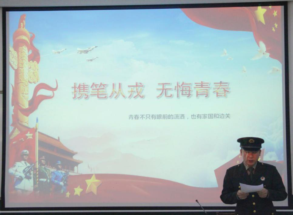 黄璐老师从征集对象及条件、征集流程、优先政策以及大学生士兵退役后优惠政策四个方面开展宣讲。她指出,依法服兵役是中华人民共和国每个公民义不容辞的责任和义务,大学生当兵的经历更是一笔不可多得的宝贵财富。