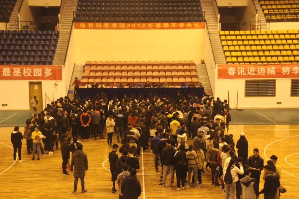 (本网讯:杨慧君)3月4日晚上7:00,我院于新体育馆举行2018年春季开学典礼。出席本次开学典礼的领导老师有肖松书记,吴永海副书记,吴湘军副院长,研究生办公室陈玉凤老师,教务办王月英老师,学工办彭友老师,辅导员杜宏伟老师及各年级班主任等。本次开学典礼由宁珊珊老师主持。