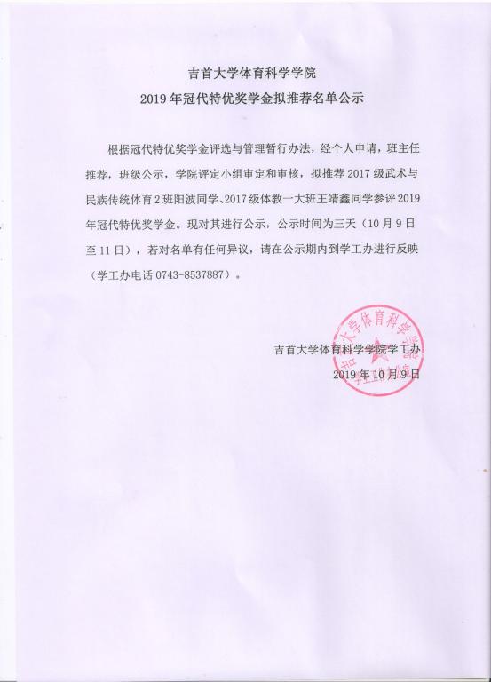 威廉希尔中文官网威廉希尔中文官网2019年冠代特优奖学金拟推荐名单