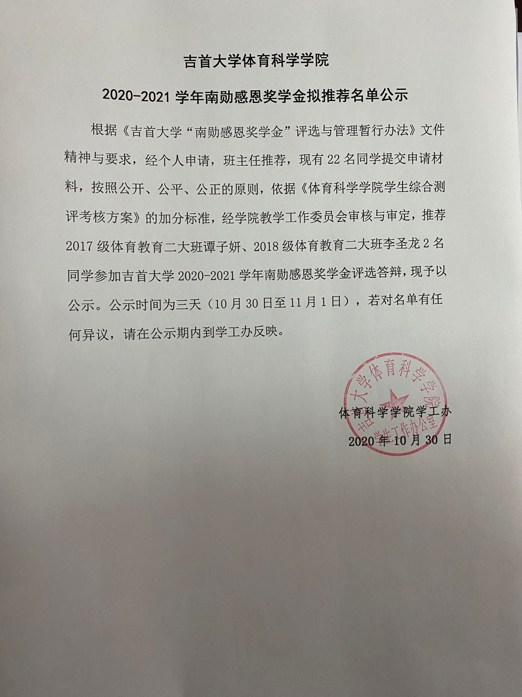 威廉希尔中文官网威廉希尔中文官网2020-2021年南勋感恩奖学金拟推荐名单公示