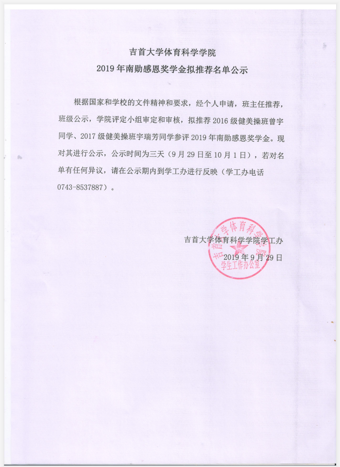 威廉希尔中文官网威廉希尔中文官网2019年南勋感恩奖学金拟推荐名单公示