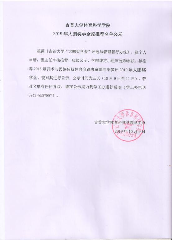 威廉希尔中文官网威廉希尔中文官网2019年大鹏奖学金拟推荐名单
