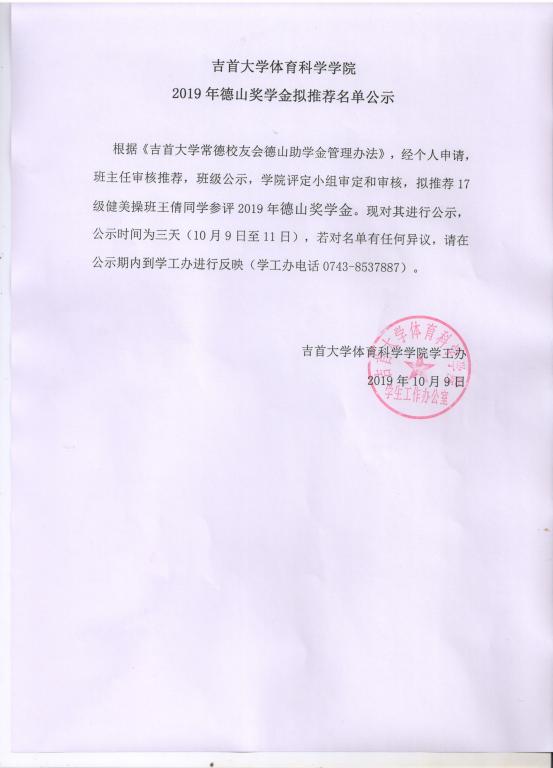 威廉希尔中文官网威廉希尔中文官网2019年德山奖学金拟推荐名单公示