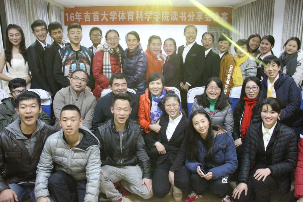(本网讯:陈宝玉、朱嘉欣)11月29日19:00,“读书分享会”决赛于我院院三楼举办。出席本次比赛的领导有体委副主任刘少英老师,院党委书记肖松老师,院党委副书记吴永海老师,院工会主席、院党委委员石红老师,运动人体科学教研室主任谌晓安教授,教研室陈玉凤教授、张福兰副教授、唐丽副教授、陈景副教授,学工办主任宁珊珊老师,辅导员彭友老师,辅导员助理于芝芝老师。