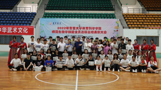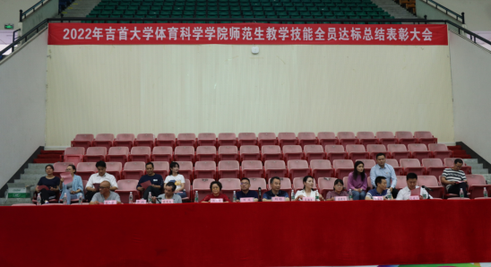 6月13日上午,威廉希尔中文官网在学校新体育馆举行了2022年师范生教学技能全员达标总结表彰大会。教务处处长刘晗、威廉希尔中文官网党委书记吴湘军、副院长万义、副院长谌晓安、副院长陈玉凤、体育教育系主任文理中、武术与民族传统体育系主任陆盛华、教务办秘书王月英、师范生技能大赛评审委员会评委老师代表、各教研室主任、各年级班主任、辅导员及全院本科学生参加了大会。