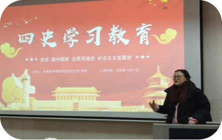为深入学习《新时代公民道德建设实施纲要》《新时代爱国主义教育实施纲要》和“四史”,激励一代又一代中华儿女为祖国发展繁荣而自强不息、不懈奋斗,加强当代大学生的道德建设,提升传承中华优秀传统文化、践行社会主义核心价值观的自觉性。12月17日中午,体育学院研究生党支部组织全体研究生集中学习了两个纲要和“四史”知识。