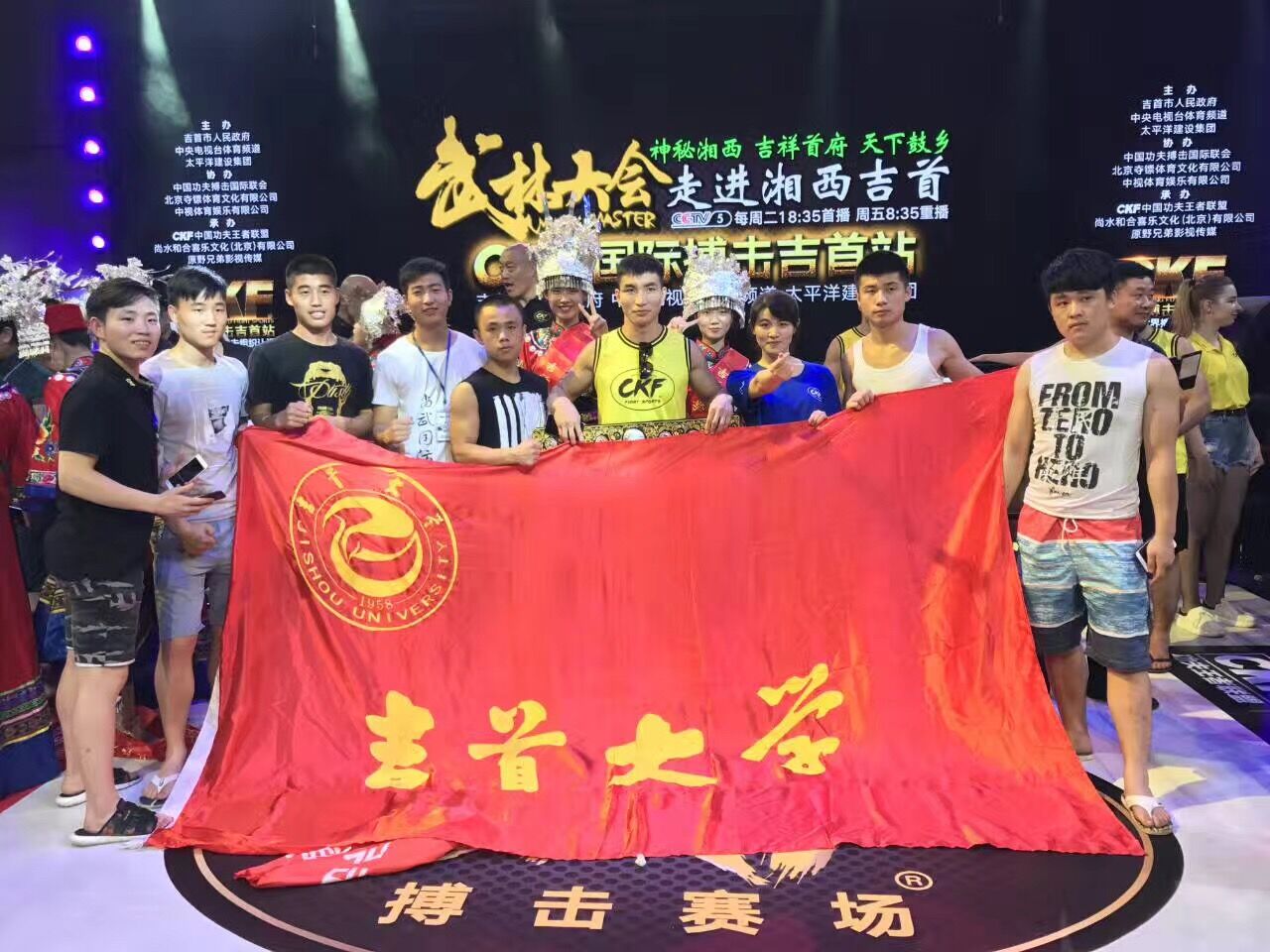 (撰稿:舒颜开)2017年7月8日晚,武林大会CKF国际搏击赛吉首站在湖南威廉希尔中文官网体育馆正式开战,来至俄罗斯、日本、印度、韩国、泰国、菲律宾和中国等6个国家的优秀选手同台竞争。我院乐鹏辉同学参加了本次比赛,并不负学校师生的厚望,击败泰国选手董,荣获CKF国际搏击吉首站73kg级冠军。