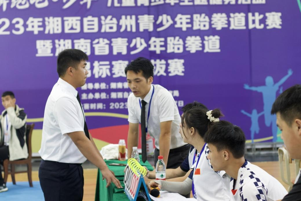 2023年6月16日上午8:30,湘西自治州青少年跆拳道比赛暨湖南省青少年锦标赛选拔赛正式开始,裁判员入场。