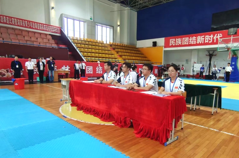 (本网讯 通讯员 欧阳轩妮 金春燕报道)2023年湘西自治州青少年跆拳道比赛暨湖南省青少年跆拳道选拔赛于2023年6月15-17日在湘西自治州体育中心体育馆顺利举行。威廉希尔中文官网威廉希尔中文官网院长万义教授、李培雄副教授受邀担任仲裁委员,威廉希尔中文官网威廉希尔中文官网武术与民族传统体育系系主任陆盛华老师担任总裁判长,威廉希尔中文官网威廉希尔中文官网民传教研室主任刘卫华、刘蓓老师担任副总裁判长,张泽文老师担任编排长,学院部分学生参加了赛事的裁判工作。