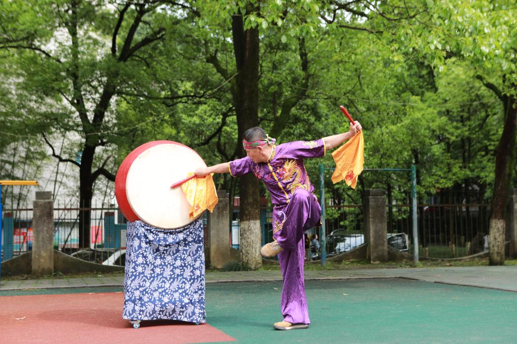 图四 马文国博士现场表演湘西武鼓