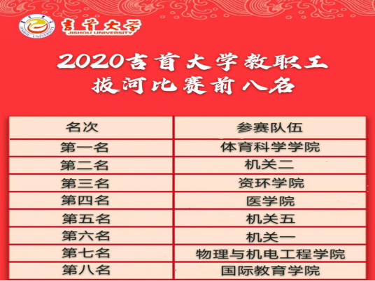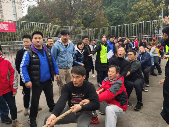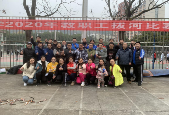 为丰富全体教职工的精神文化生活,促进教职工之间的交流,发扬团队精神,增强凝聚力,2020年12月8日在我校砂子坳校区新体育馆前篮球场举行了全校教职工拔河比赛。