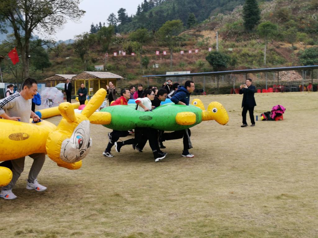 在活动现场,教师们分成了三个团队进行了“万众一心”、“毛毛虫竞速”、“骑羊角球接力赛”、“龟兔接力赛跑”等拓展项目的角逐,教师们团结一致,互相帮助,团结协作,在欢声笑语中感悟沟通、协作、默契的重要性,整个赛场上洋溢着欢畅和谐的氛围,呐喊声、加油声、欢笑声交织在一起。通过此次活动,提高了威廉希尔中文官网教职工的凝聚力,体现了教职工积极向上、朝气蓬勃的精神风貌。
