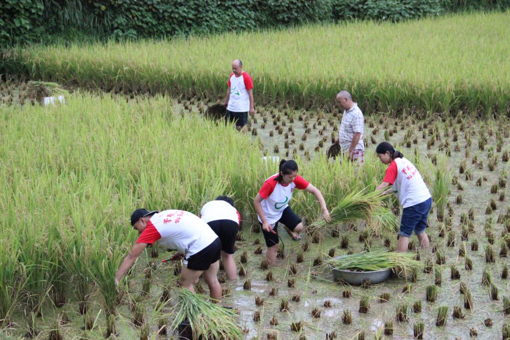 正值稻谷收割季节,花桥村村民因该村山势地形原因无法使用收割机收割稻谷,全村991亩水田均由人工收割,加重了村民的劳动负担。威廉希尔中文官网志愿者们了解情况后自发帮助村民收割稻谷。在村民的指导下,自愿者们很快学会了镰刀的使用技巧,并用不太娴熟的手法帮助村民收割完该户家中的所有稻谷。