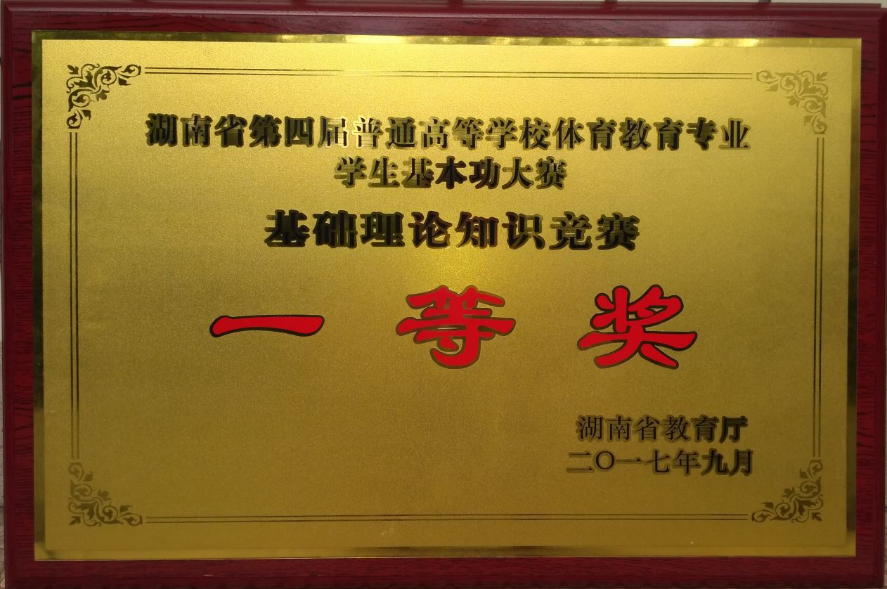 (学院教务办 王月英报道)929-30日,由湖南省教育厅主办的2017年湖南省普通高等学校体育教育专业学生基本功大赛在湖南师范大学隆重举行,威廉希尔中文官网代表队通过两天紧张激烈的角逐不负众望,取得优异成绩,获团体成绩一等奖,其中,基础理论知识竞赛一等奖、运动技能竞赛二等奖;且大学英语排名全省第一、专业基础理论排名第二,大学计算机排名第三,理论科目获得历年比赛最好成绩。
