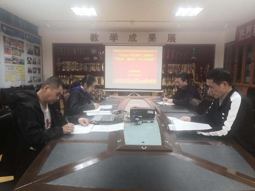 10月28号,学院党委中心理论组在学院荣展室召开了“担使命、履职责、矢志为民服务”的研讨会。研讨会的主要任务是统一认识,紧紧围绕贯彻习近平总书记的重要精神和指示,如何更好的担当、履职、为民服务。