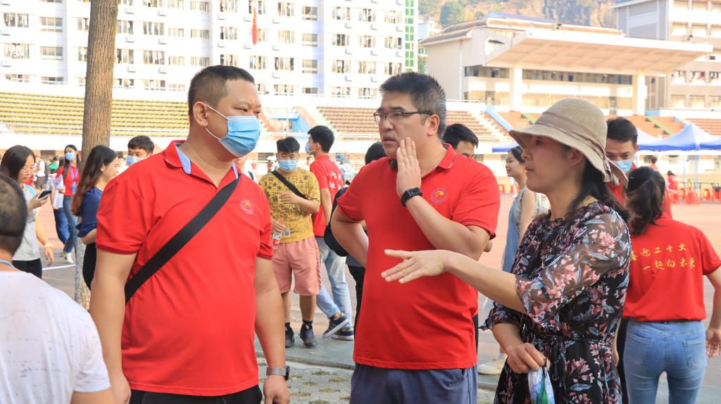 上图为迎新现场学院领导指导工作(赵文杰摄)
