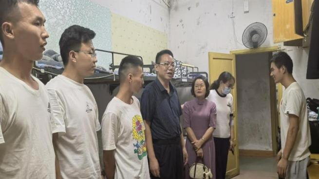 晚上,吴湘军、万义带领学院党政领导兵分两路下到学生寝室看望2022级新生。每到一个寝室,领导们都仔细询问了新生到校后的感受和情况,叮嘱同学们在生活中遇到困难及时向辅导员反映,安心学习,多与老师沟通,多与同学交流,提醒学生注意个人财物的保管;要求同学们新的学期,新的起点,新的任务,新的目标,尽快全身心投入到大学、研究生的学习与生活当中来,为自己的人生书写华章。