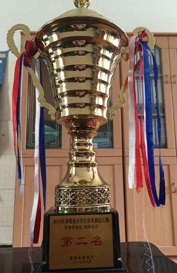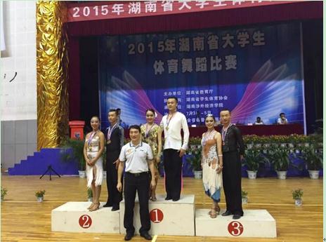 由湖南省教育厅举办的2015年湖南省大学生体育舞蹈代表比赛于7月5日—日6在湖南涉外经济学院举行。我院体育舞蹈代表队在学院行政负责人周道平领队的带领下勇夺得大学专业组团体亚军。