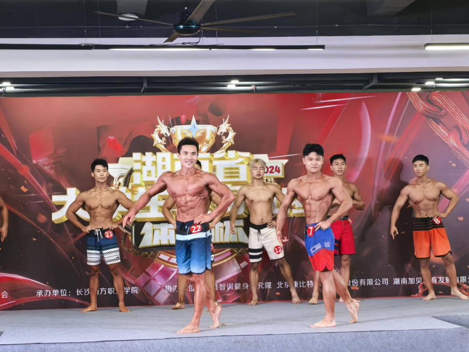 他们通过锻炼、坚持和自律,塑造出了令人瞩目的健美身姿,带来了一场力量与美学碰撞的青春盛宴。除了身体的肌肉力量展示,更多的是意志的体现,他们的每一次动作、每一个表情都透露出对健美运动的热爱和专注。在比赛中,他们展现了自信、优雅和力量的完美结合,他们的肌肉线条勾勒出完美的身体比例,舞台上的他们如同雕塑般完美无瑕。他们用自己的汗水和努力,为学校带来了光荣和荣誉,为校园健身健美的运动增添了新的活力。充分展现了体院学子积极向上、挑战极限的精神风貌,也体现了我校体育专业建设和人才培养的突出成绩。