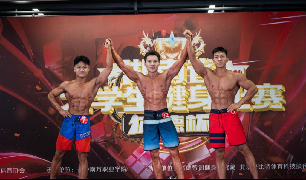 我校王思育同学荣获大学组男子健体冠军(中间位)
