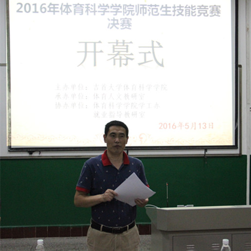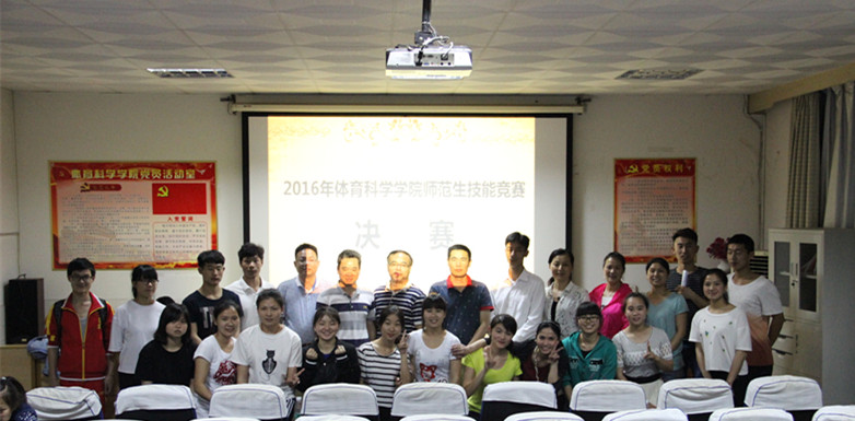 张雨杨)5月13日晚7:30,由威廉希尔中文官网主办,体育人文教研室承办,学工办协办的2016年威廉希尔中文官网第二届师范生技能竞赛决赛在第一教学楼1205教室顺利进行。莅临本次大赛的学院领导和评委有威廉希尔中文官网院长周道平老师、院党委副书记吴永海老师、副院长张小林博士以及体育人文教研室5位专任教师和学院教务秘书兼任《现代教育技术》课程的王月英老师、辅导员宁珊珊老师等。