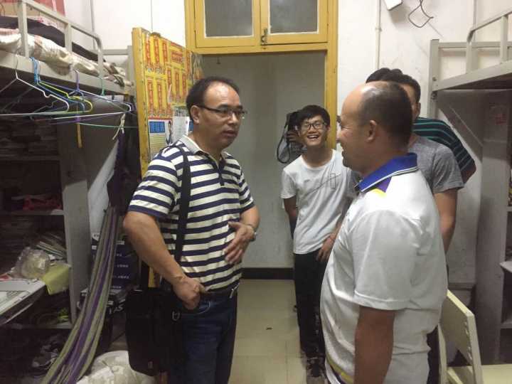(本网讯:陈宝玉)为了保证学院新学期开学工作顺利进行,9月3日晚9点,威廉希尔中文官网党委副书记吴永海及辅导员彭友老师、杜宏伟老师、袁强老师、罗伟力老师走进学生宿舍,检查各项开学准备工作,走访慰问返校学生。
