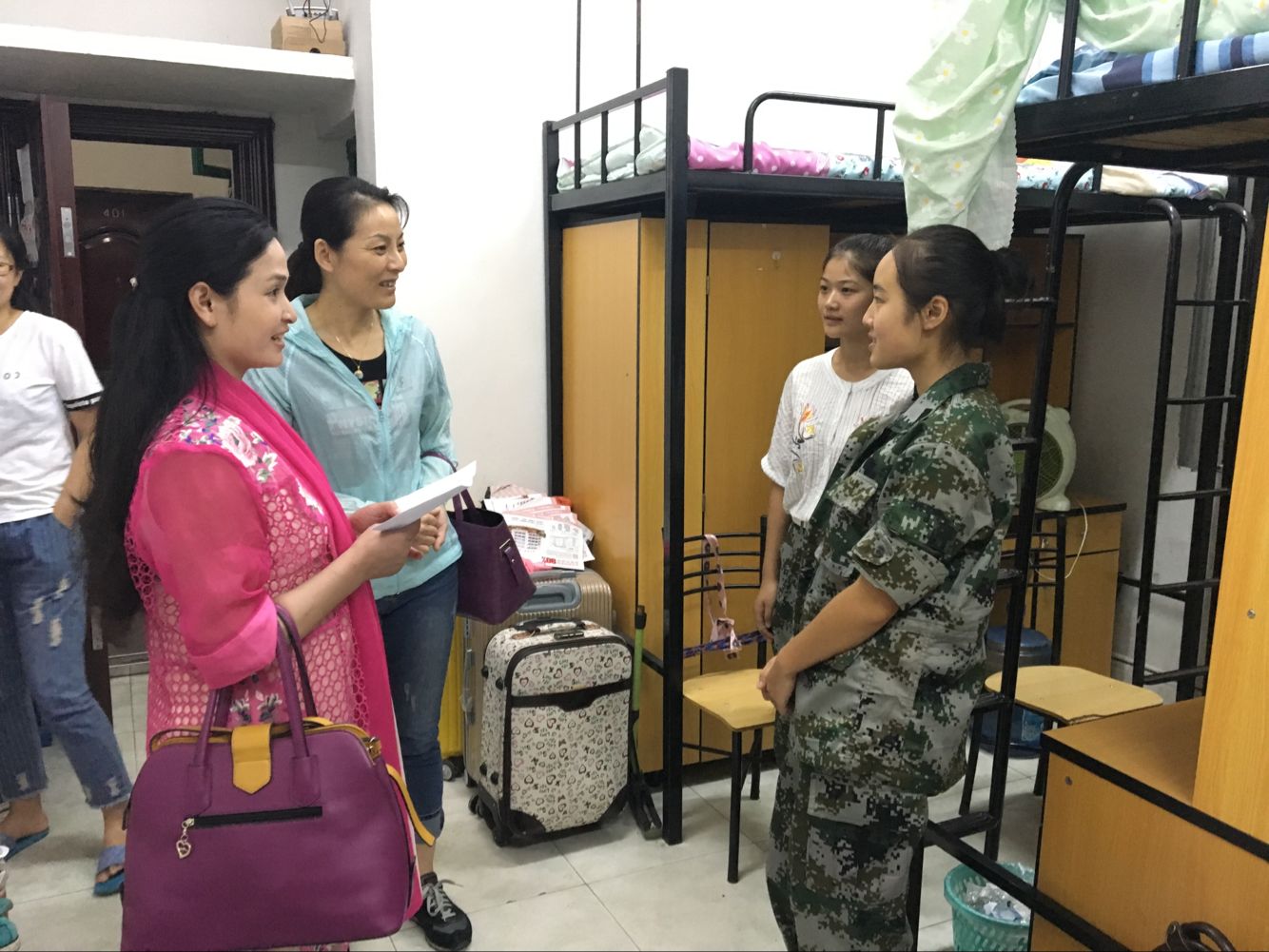 | 图为学院领导及辅导员到女生寝室看望新生(李盼摄) |