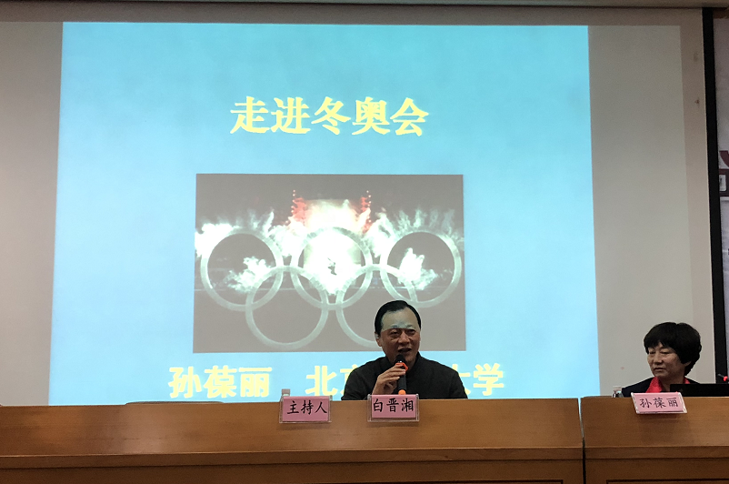 (通讯员:钱硕森 李久阳)2018年11月12日14:30,北京体育大学博士生导师孙葆丽教授应邀做客威廉希尔中文官网“体育文化人创新论坛”,在砂子坳校区图书馆学术报告厅为我校体育学院师生作了题为“走进冬奥会”的学术报告。威廉希尔中文官网党委副书记、校长白晋湘教授、威廉希尔中文官网周道平院长、吴湘军副院长等领导及学校150余名老师和学生参加本次学术报告。校长白晋湘教授担任报告主持。白校长对孙葆丽教授的到来代表学校党委和全体师生员工表示衷心感谢和热烈欢迎,感谢她不远千里到校支持我校体育学科的建设与发展。