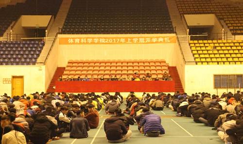 本网讯(彭友、朱坤报道)2月19日7:00在威廉希尔中文官网砂子坳校区新体育馆举行了2017年春季威廉希尔中文官网开学典礼。会议由院党委书记肖松主持,出席开学典礼的领导有周道平院长,吴永海副书记,张小林副院长,吴湘军副院长及教务办主任王月英,学工办主任宁珊珊,辅导员彭友和各年级班主任。