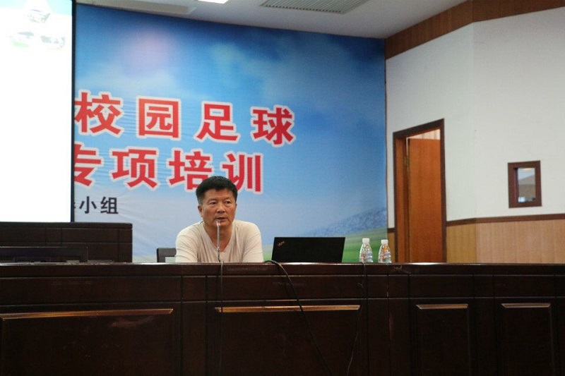 在教学过程中,陈效科教授将校园足球领导小组意见与中国竞技足球、校园足球现状相结合向大家阐述了发展校园足球的目的是以足球为突破口来提高青少年的身体素质,最终取得深化校园体育改革、推动校园体育文化建设的效果。同时,陈教授提出校园足球即课外活动,是与竞技足球完全不同性质的足球发展模式,在发展校园足球时必须以中国青少年训练大纲为基准。此外,陈教授向学员们详细讲解了“教学进度中的几种教学顺序安排方法的优缺点”、“教案各个部分的基本注意事项”、“以训练科目选择准备活动”、“足球训练必须借助比赛的推动”、“课余足球训练的原则、内容”、“如何进行足球体能训练”等多个方面的关于校园足球开展的专业知识。